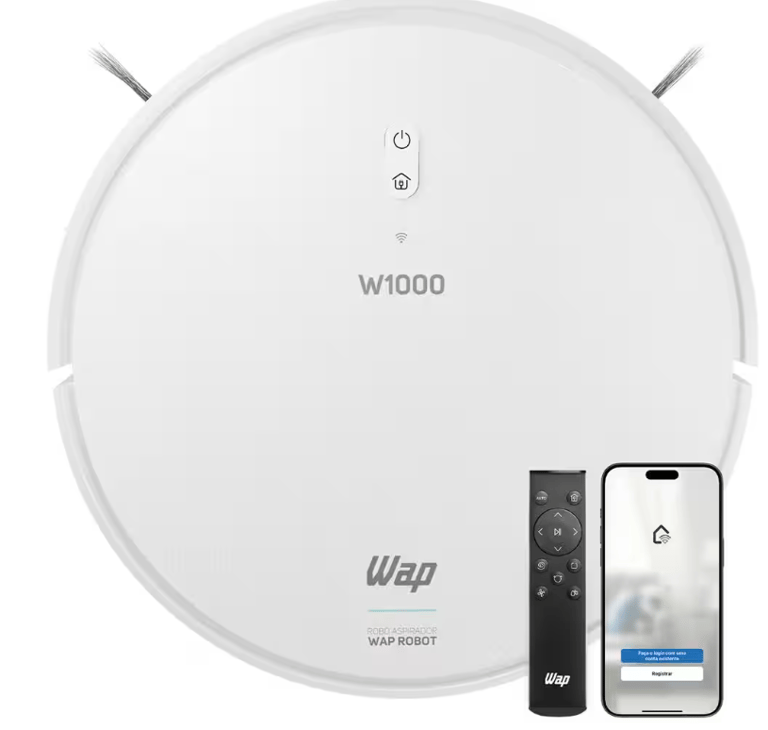Tecnologia: Sensores antiqueda e de impacto, conectividade Wi-Fi, controle por aplicativo e assistentes virtuais (Alexa e Google Assistente)
